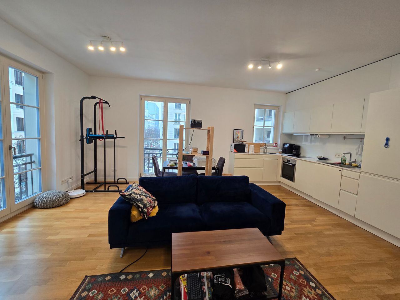 Bright and spacious 82 m² apartment in a modern building completed in 2014, located in the heart of Berlin-Mitte. The apartment offers two separate bedrooms, a large living area with an open-plan kitchen, and a spacious bathroom with shower, bathtub, and double washbasin. A fitted kitchen with refrigerator and dishwasher is included. The apartment also features a large balcony, elevator access, and a basement/storage room. The location is excellent: U Spittelmarkt is only about a 3-minute walk a...