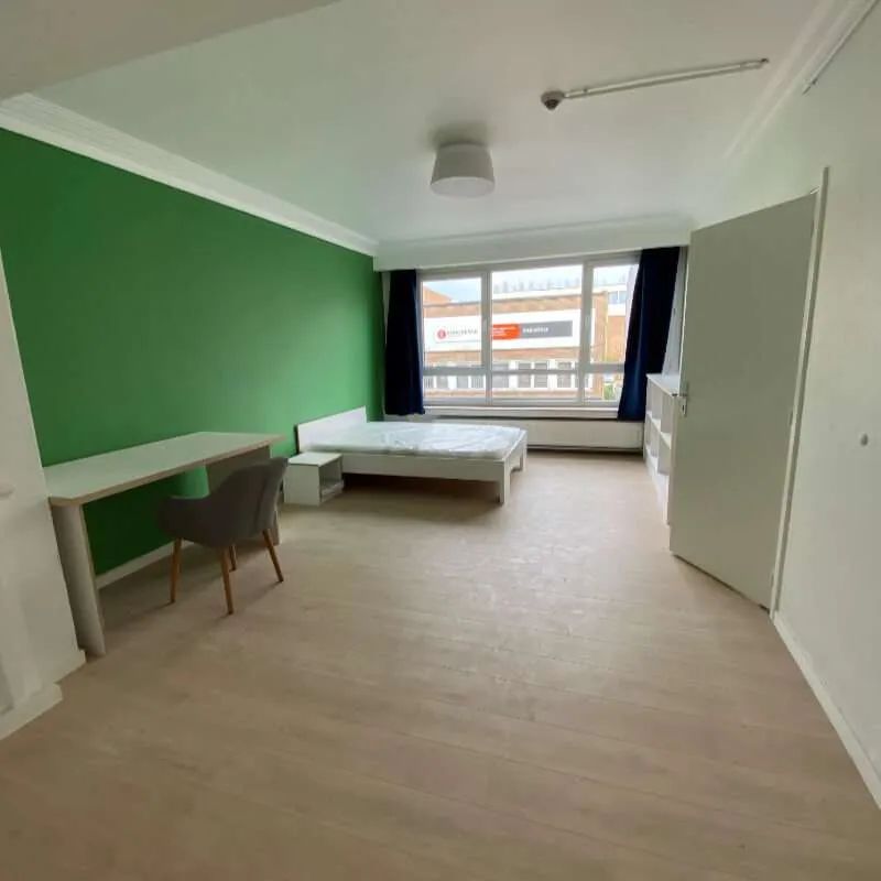 The cradle of Brussels' Belle Époque. Where Art Deco and Art Nouveau shine. One of the city's most chic neighborhoods. The shared kitchen and living room are perfect for meeting people and sharing the experience of shared living. Everything is there to make you enjoy community life: oven, stovetop, sink, microwave. You can even have your own closet and fridge—it's the best! Each room has a double bed, an armchair, a wardrobe, a desk, and most have their own private bathroom and toilet. Curtain...
