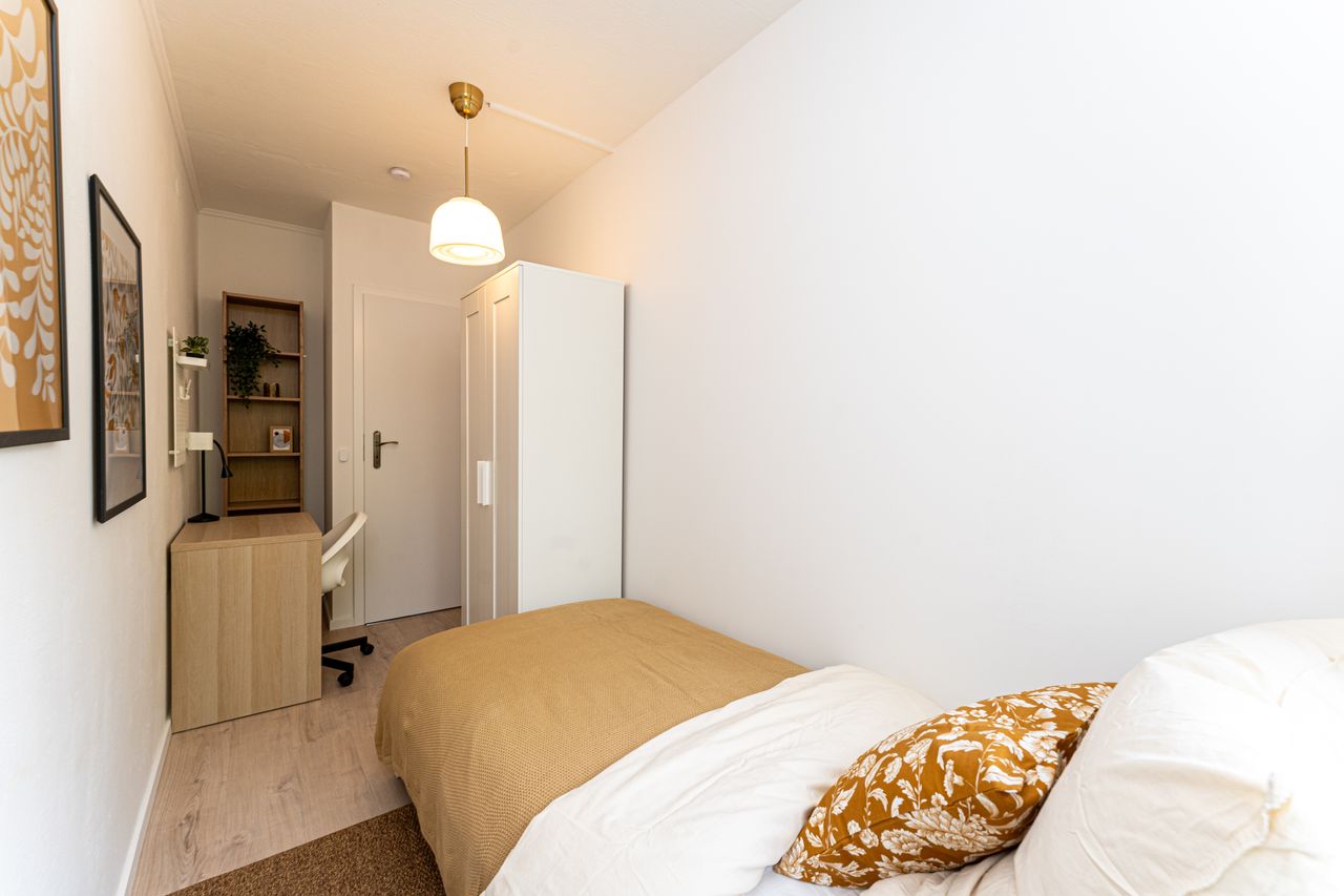 This fully furnished room offers everything you need for a comfortable stay, including a cozy bed, a desk with chair, and a spacious wardrobe. The shared areas feature a fully equipped kitchen, a washing machine, and all essential everyday amenities. 📍 Registration (Anmeldung) is possible 💰 The rent is all-inclusive, covering utilities such as heating, water, internet, and GEZ 📅 Move-in is available on weekdays between 10:00 AM and 3:00 PM. If your contract starts on a weekend, move-in will...