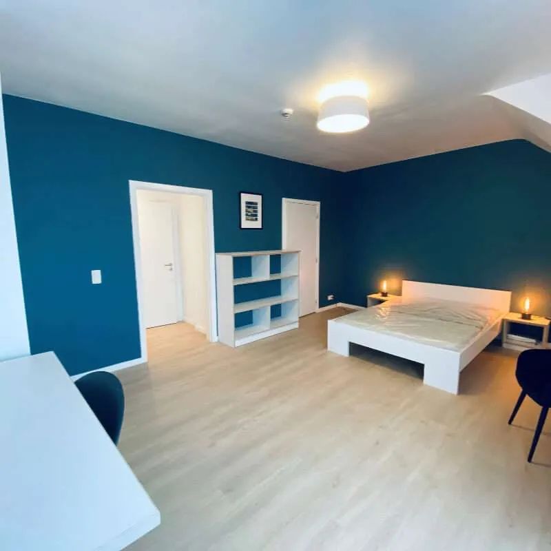 The cradle of Brussels' Belle Époque. Where Art Deco and Art Nouveau shine. One of the city's most chic neighborhoods. The shared kitchen and living room are perfect for meeting people and sharing the experience of shared living. Everything is there to make you enjoy community life: oven, stovetop, sink, microwave. You can even have your own closet and fridge—it's the best! Each room has a double bed, an armchair, a wardrobe, a desk, and most have their own private bathroom and toilet. Curtain...