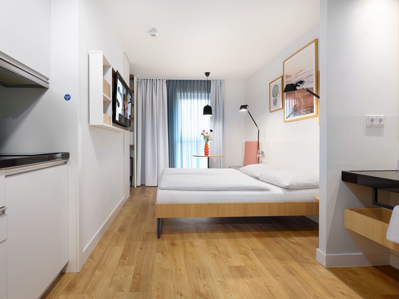 Located just a few minutes from the main train station, this apartment building in Mannheim offers ideal accommodations for business travelers, commuters, and project staff. Modern apartments featuring a kitchenette, laundry facilities, and a communal lobby provide everything needed for daily life and extended stays. Our studio offers about 20 m² a unique living experience: Double bed 140x200 cm, weekly room cleaning, bath with shower / WC / hair dryer, flatscreen-TV, free Wi-Fi, soundproof win...