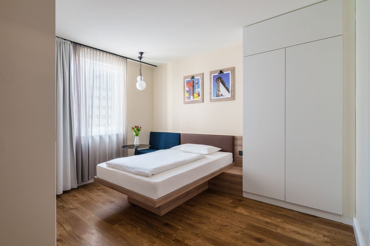 Serviced Apartments - A bit of home for a few months? Whether you are on the road for business, traveling or simply need a pleasant accommodation for a longer period of time: We master the balancing act between hotel and living. In our fully and smartly furnished apartments you get high-quality furnishings and individual service. The Studio S up to 19 sqm is spacious and has a cozy single bed (1.20 m x 2.00 m), a kitchenette and a bathroom. The equipment includes a flat screen TV, dishwasher ...