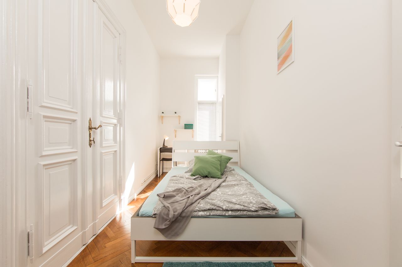 Modernly furnished room in a shared flat, including registration