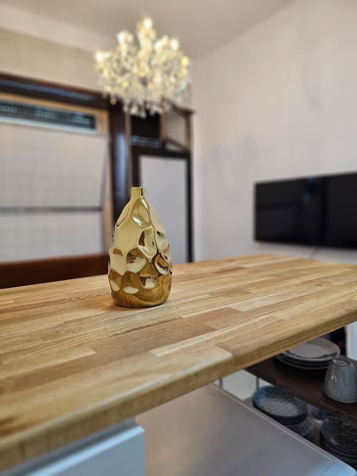 An apartment in the former commercial premises on the ground floor of a typical Görlitz building from the Wilhelminian era. This 45 m² flat, furnished as a spacious studio, offers a quiet bedroom overlooking the rear courtyard and an originally designed kitchen-diner with a modern espresso machine (including a milk frother). The flat is ideal for two people wishing to explore the city of Görlitz. It is also well suited for a working stay, thanks to the desk and fast Wi-Fi. A cot is available in ...