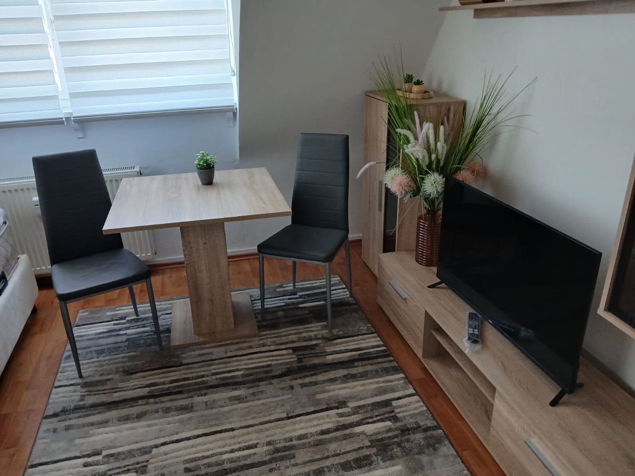 It is a room in a shared flat with shared bathroom and shared kitchen. The Apartment is for two people (price is for one person, each extra person pays 10e per night)