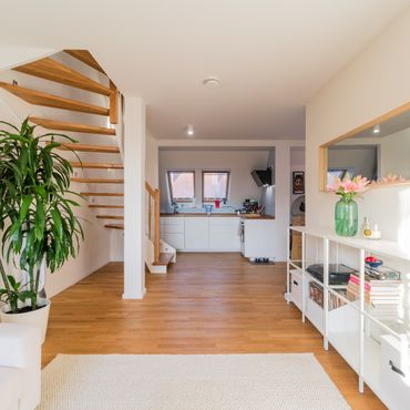 High-quality furnished top-floor apartment with south-east-facing terrace and open-plan layout