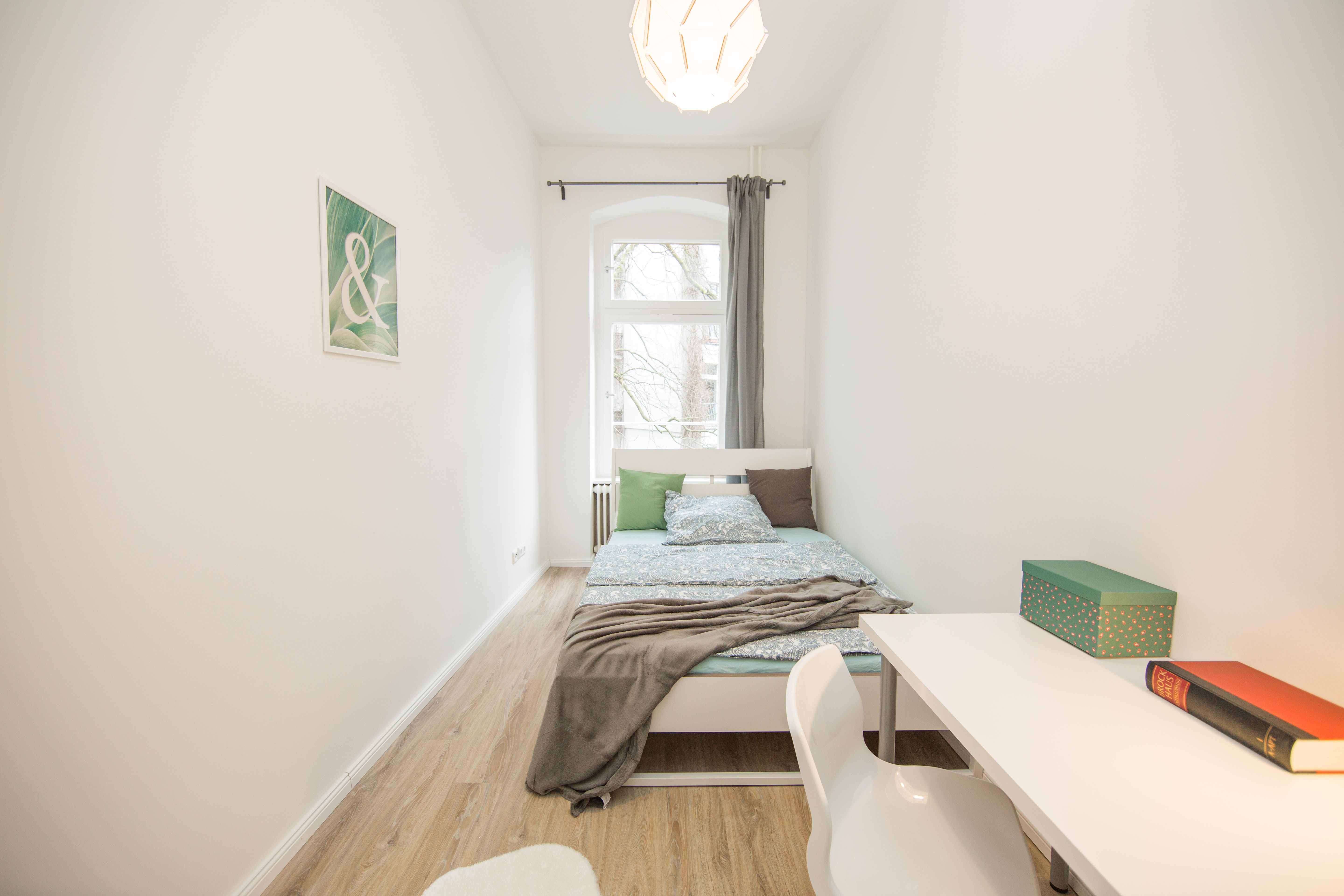 Modernly furnished room in a shared flat, including registration