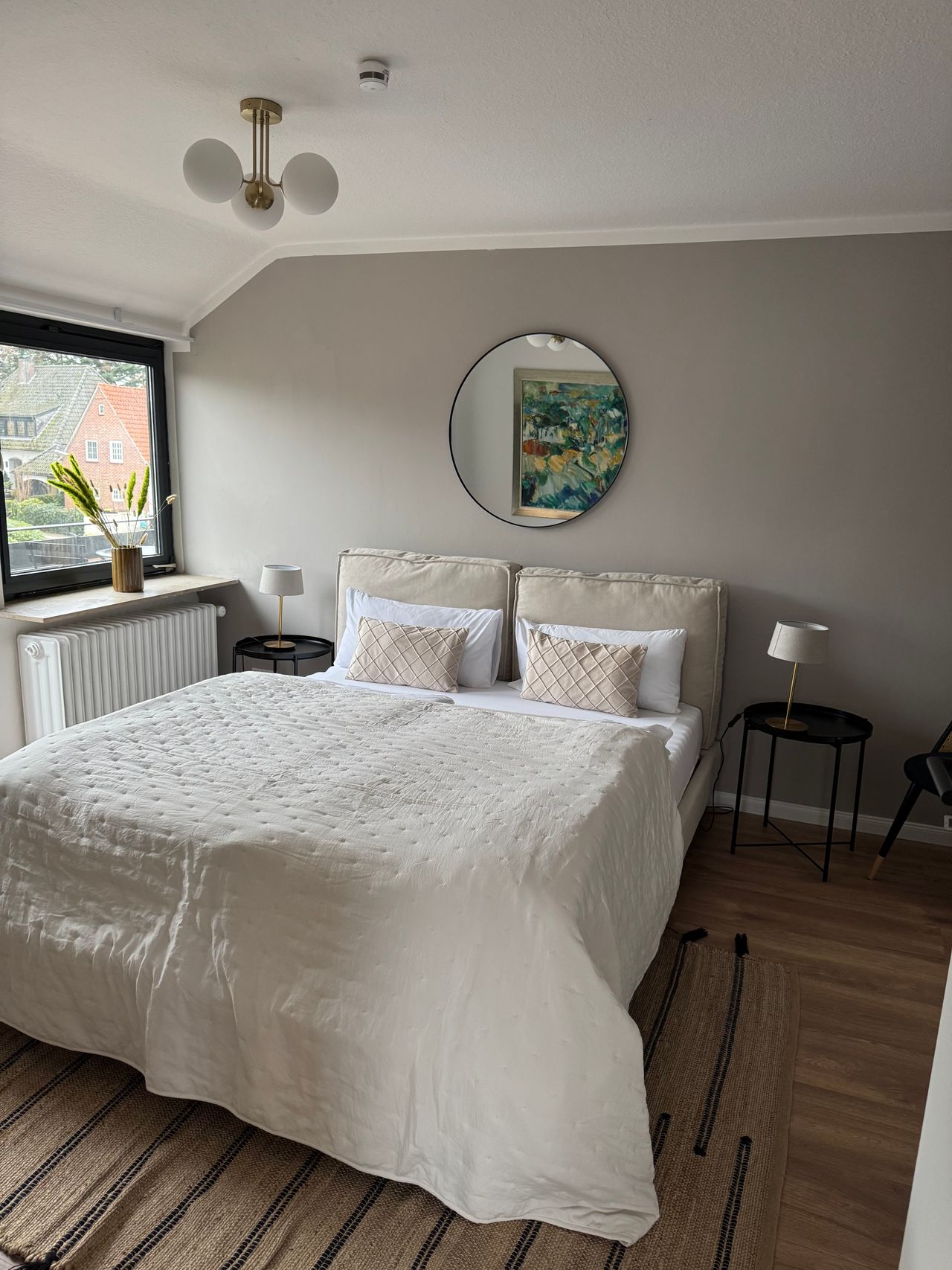 This stylish, beautiful flat is located in a completely renovated building directly on the Borgfelder Deich, but in a very central location. It is right next to the bus stop and a 10-minute walk from Borgfeld or Lilienthal (5 minutes by car or train). There are many leisure activities available. Bicycles can be stored in a garage, and parking spaces are available on the property.