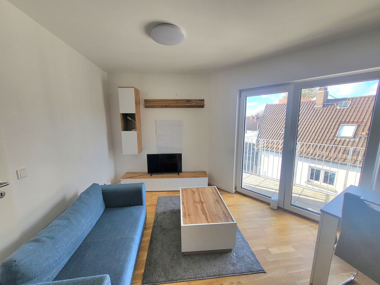New Penthouse Flat in Darmstadt New building- 1 livingroom with seating area, dining table & chairs, 1 sofabed, cupboard, tv 1 sleepingroom with doublebed, cupboard, 1 storage room with washingmachine and dryer. Big badroom with walk-in shower Ventilation systen in each room. real wood parquet. Floor heating Near tram