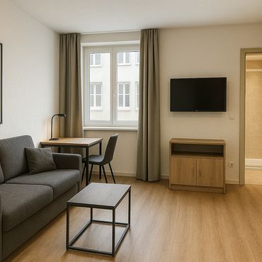 Modern 1-room apartment with terrace, fully furnished and centrally located yet peaceful. Available for the first time.