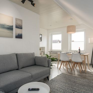 High-quality furnished top-floor apartment with south-east-facing terrace and open-plan layout