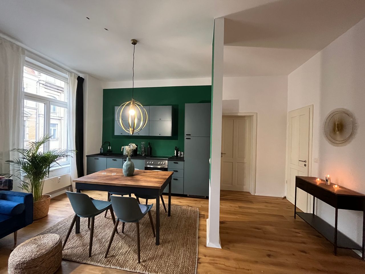 Unique, Bright & Stylishly Furnished Apartment in a Prime Leipzig Location – Newly Renovated & Fully Equipped This uniquely designed and spacious 2-room apartment is located on the 2nd floor of a beautiful Gründerzeit building – complete with an elevator and an impressive, historic entrance hall. The apartment has been fully renovated and furnished with great attention to detail, offering an exceptional, like-new living experience. The open living and dining area is filled with natural light a...