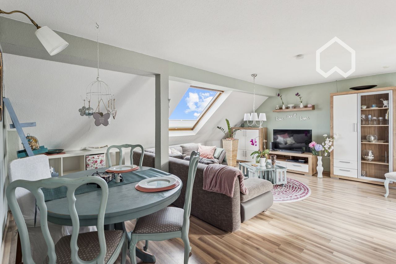 Welcome to this stylishly furnished 3-room attic apartment with approx. 85 m² of living space. Ideal for individuals, couples or small families who want to enjoy urban living with plenty of comfort. The 2 bedrooms are approx. 15 m² and each have a bed or a comfortable sofa bed measuring 140x200m. (Duvet, pillows and covers + towels can be provided on request.) Fully equipped fitted kitchen with everything you need. Modern bathroom with corner bathtub & shower. The loggia with a view over B...