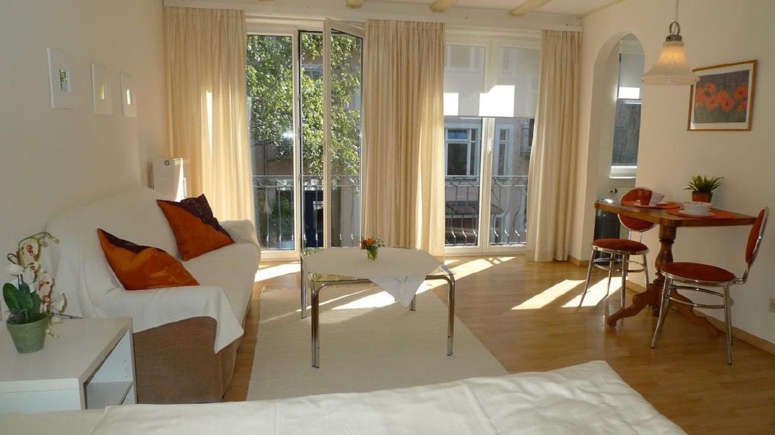 Our beautiful Stadthaus Dresden offers stylish serviced apartments which are the perfect base for comfortable stay in Dresden. This well presented studio is located on the first floor of the annex of this elegantly restored building and has access to a the quiet yard area. The apartment is fully furnished and equipped. Living room/bedroom with sofa, double bed Queen Size, , dining area. Bathroom with shower. Separate kitchen with stove, fridge, toaster, kettle, coffee filter machine. Coin-o...