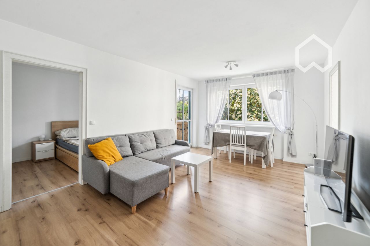 The modern and light-filled 2-room apartment on the mezzanine floor offers you all the amenities you need for your stay in Leipzig. These include a 1.4-meter-wide bed, a desk, a smart TV in the living room, free Wi-Fi, a fully equipped kitchen, and a balcony inviting you to relax with a view of the Könneritz Bridge. The building complex features an elevator, a bakery, and a Greek restaurant in the courtyard.