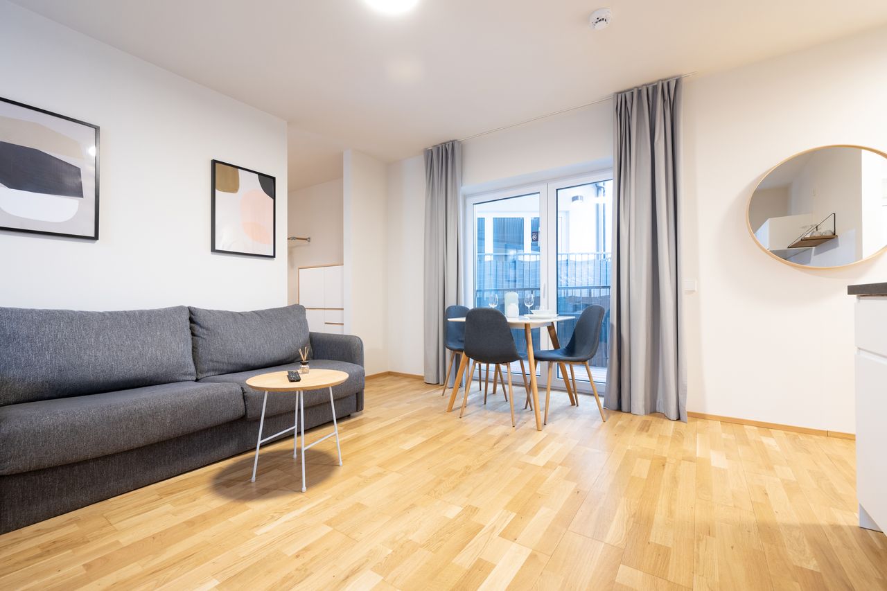 Our high-quality studio apartments of the "Suite L" category, designed for 4 guests, welcome you with stylish design and premium furnishings. Start your day with a delicious NESPRESSO coffee and enjoy all the wonderful amenities of the apartment – and everything around it – as you're right in the heart of Leipzig. For a first-class night's sleep, a cozy queen-size bed (1.40m x 2.00m) with hotel-quality bedding is ready for you. Of course, there's also a dining area for two and a large smart T...
