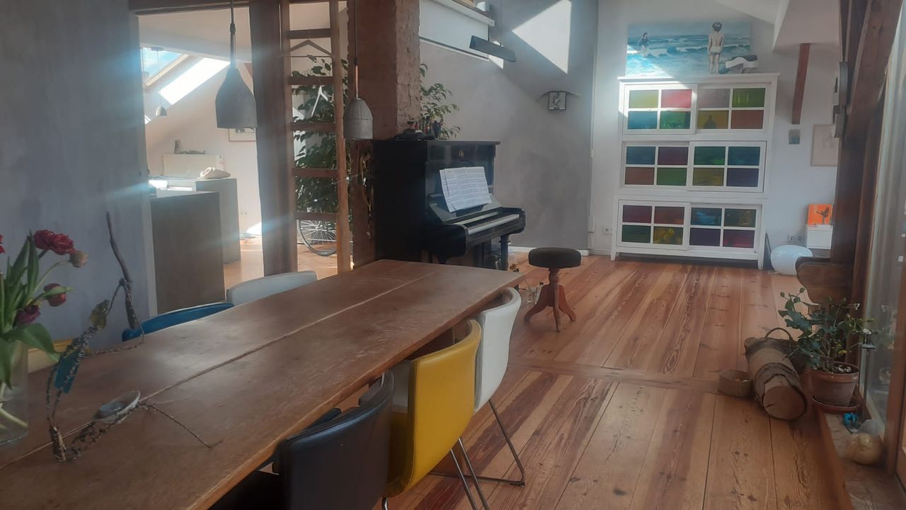 25 sqm room in a beautiful and quiet penthouse/maisonette apartment with a terrace in Kreuzberg. We live here with three sweet cats and are only looking for roommates who not only tolerate cats, but also like them :)