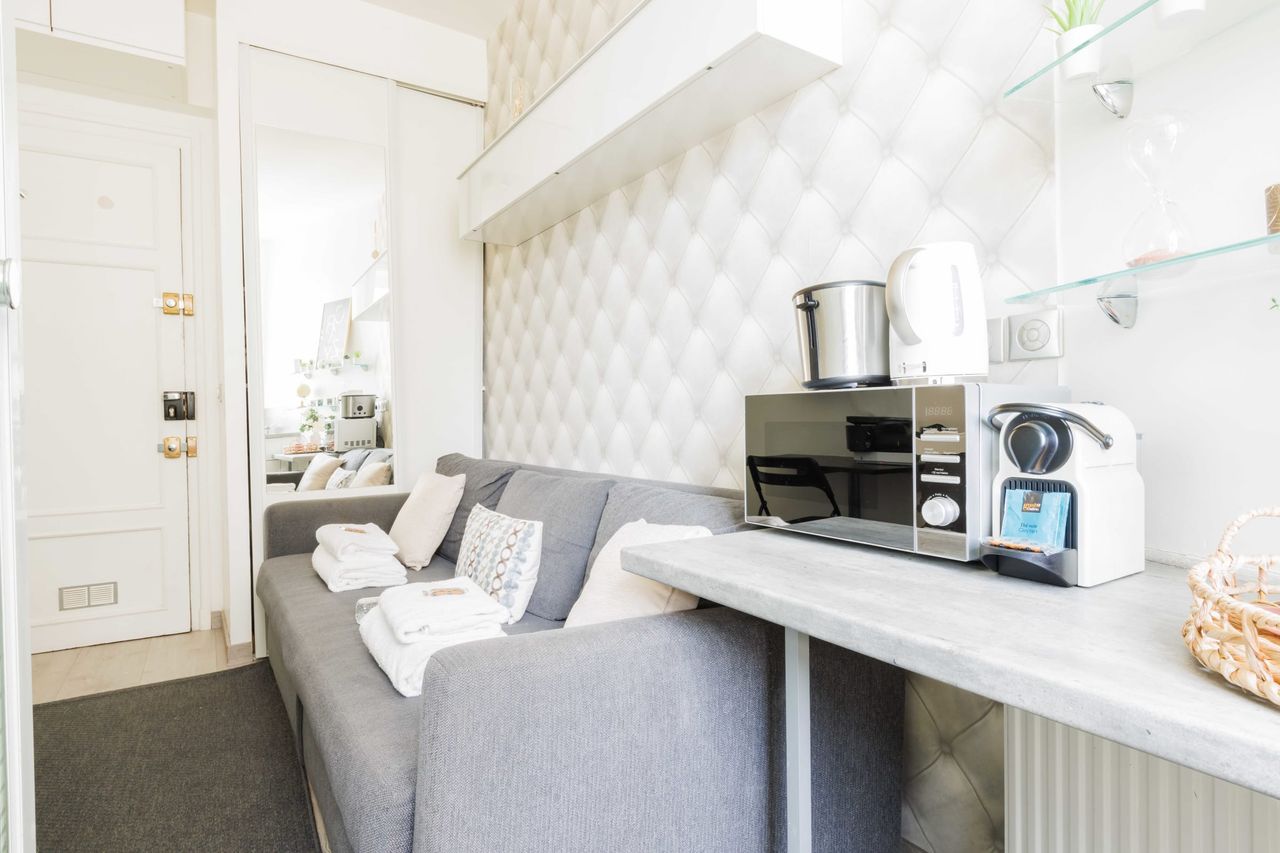 This 10m2 studio is located on the 7th floor with elevator. The WC is on the landing and is common to the floor. It comprises: - An open-plan, fully-equipped kitchen: fridge, hob, coffee machine, toaster, kettle, microwave ... - Living room with sofa bed, shower and washbasin - WC in corridor - Storage space - High-speed Internet access - Bed linen and towels provided