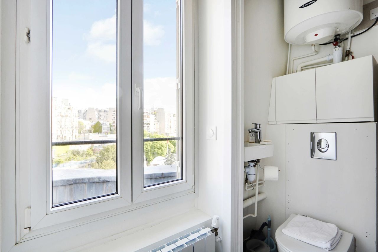 This 10m2 studio is located on the 6th floor without elevator of a residential building. It is composed of : Living room with dining area and sofa bed (140x200cm) Equipped kitchenette (refrigerator, induction cooker, microwave oven, kettle, washing machine) A bathroom with shower and toilet Storage room on the landing with washing machine to share Storage space TV and high speed internet (WiFi) Sheets and towels provided