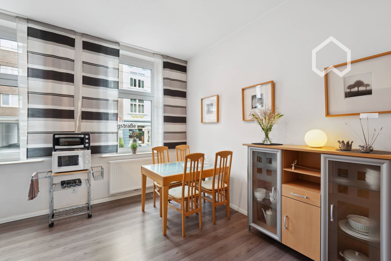Independent, separate apartment in a quiet apartment building. In the beautiful old building, the rooms have high ceilings. The Grafenberger Wald is within 3 minutes walking distance. - 35 sqm, 2 living rooms + bathroom - mezzanine floor - WIRELESS INTERNET - Fully equipped pantry kitchen with microwave, small oven, coffee capsule machine ... - bathroom with shower / washing machine - bedroom with 1,40 x 2,00 m bed - Smart TV with internet access - Terrace for exclusive use Benderstraße is the...