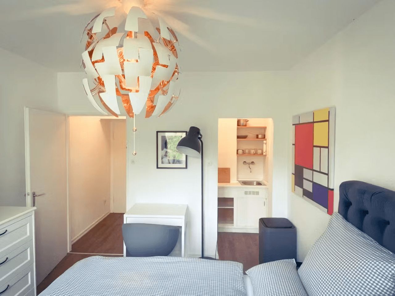 Please keep in mind that the 480€ cleaning fee + 480€ non-deposit fee have to be paid BEFORE moving in. This is an unlimited contract with 1 month notice. AMENITIES: The apartment is equipped with a king-sized box-spring bed with fine bedding, two bedside tables, one floor lamp, a drawer, a large closet, modern art, and a working desk with a corresponding working desk chair. All windows are equipped with black-out curtains, so it is possible to completely black out the apartment. Furthermore, t...