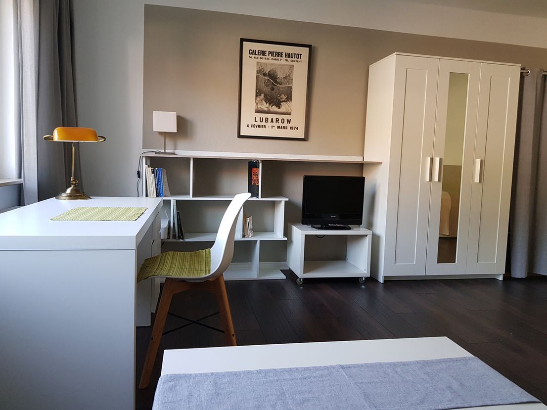 Deutsch: Schönes und angenehmes Apartment in Essen-Holsterhausen, zentral und unweit des Uni-Klinikums. Es ist voll ausgestattet, das gemütliche Wohn- und Schlafzimmer liegt sehr ruhig nach hinten raus mit Blick auf den Garten. 1,5 Zimmer, 38 qm, aufgeteilt in Wohn-Schlafzimmer (24 qm), Wohnküche (9 qm) mit Essplatz, Bad mit Badewanne, kleiner Eingangsbereich. Das Apartment liegt im Hochparterre, bis zur Eingangstür sind es nur wenige Stufen. Das gesamte Haus ist sehr gepflegt und die Bewohner...