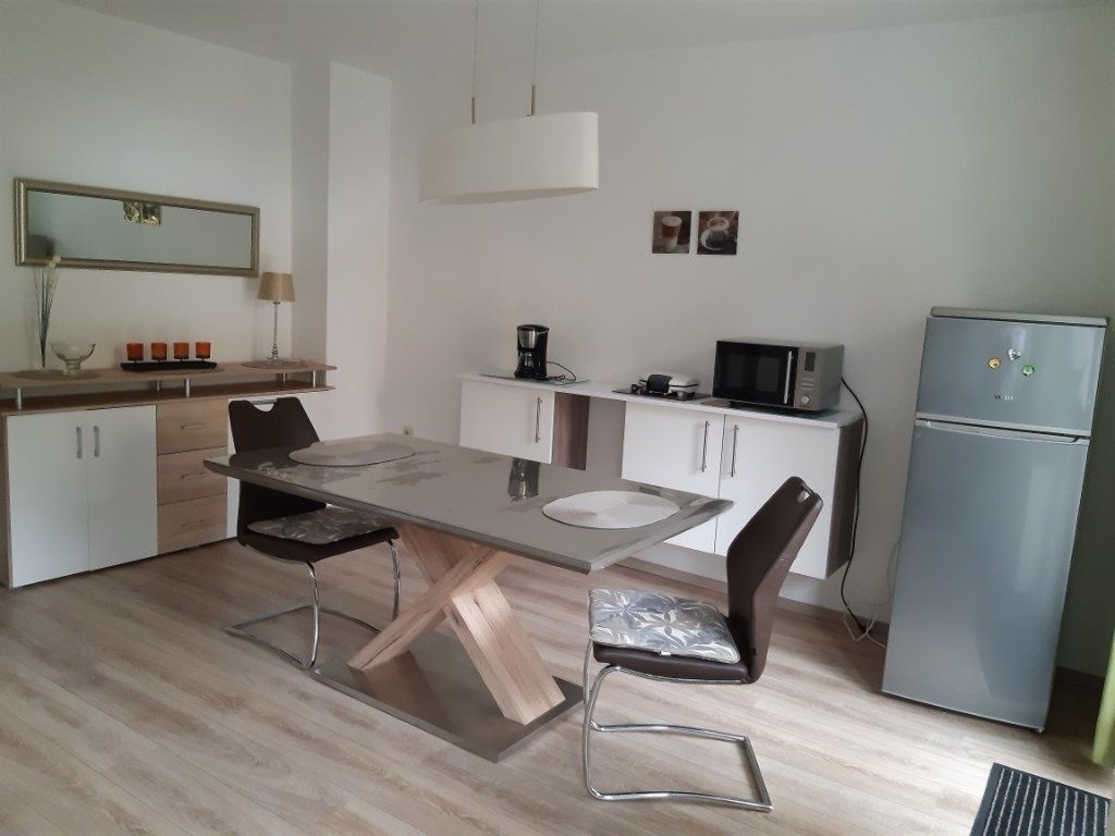 Fully furnished 2.5 room apartment for rent. Quietly located with good access to the freeway A 40 and 52 and shopping facilities. The ground floor apartment has a large Kitchen, living room, bedroom, hallway and daylight bathroom. The apartment is located in the south of Essen. The center of Essen is easy to reach by public transport. Near Uniklinikum, Alfred Krupp Hospital, Aaltotheater, Philharmonie and Grugapark. The apartment is fully furnished and well equipped.