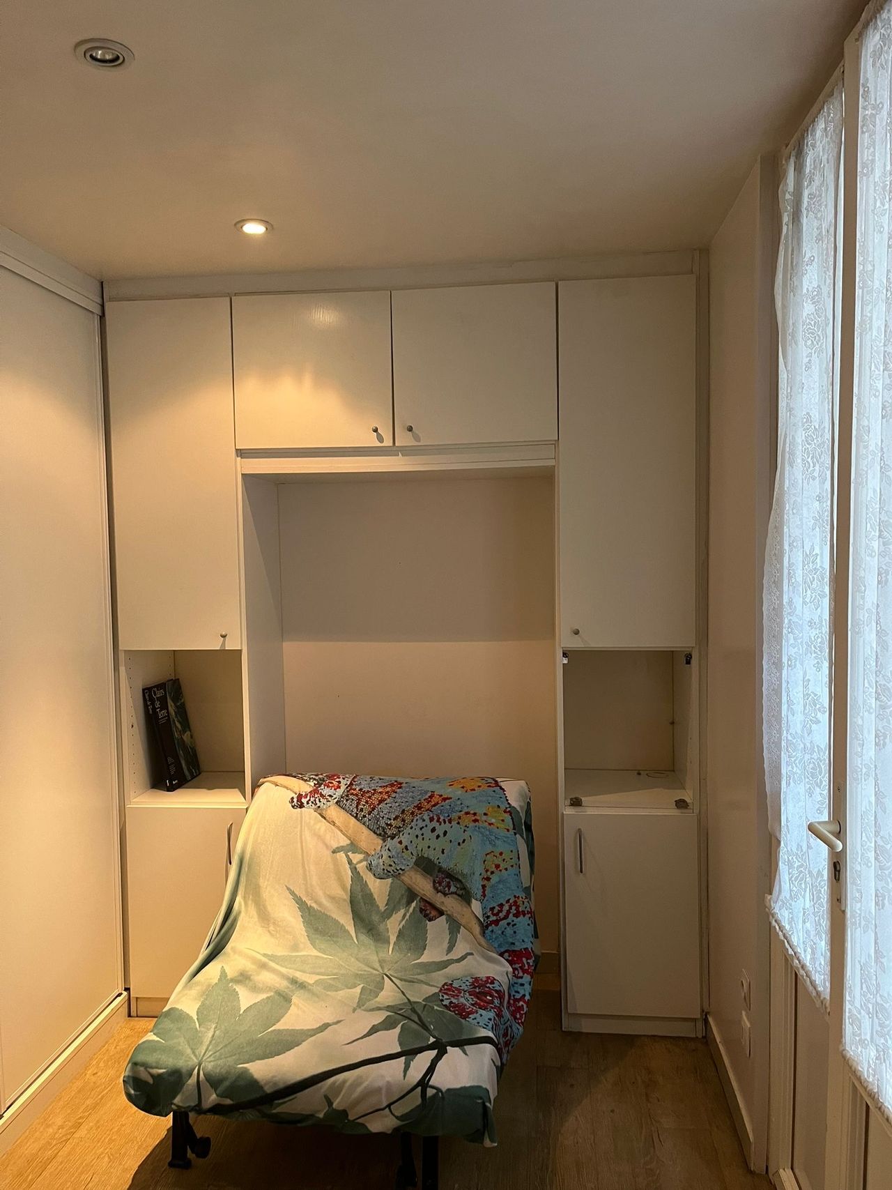 Furnished studio 11 m2 in Paris 14 rue du Chateau Shower and toilets inside the studio Kitchen fridge and sofa bed Storage in the basement Big mailbox Calm
