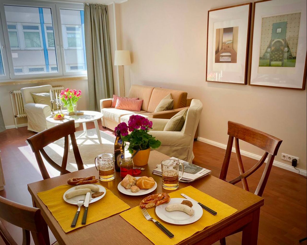 Right in the heart of Munich. Explore the entire city on foot! 6 spacious serviced apartments, 2 rooms, 75 m², up to 4 sleeping places: – Double bed (180 × 200 cm) in the bedroom – Sofa bed (160 × 200 cm) in the living room Optional air conditioning in the bedroom (extra charge – please request in advance). Paid parking available. Just a few minutes to Munich Central Station and the city center. 50 m to the subway. LCD TV, Wi-Fi. Kitchen with dishwasher and microwave. Washing machine + dryer i...