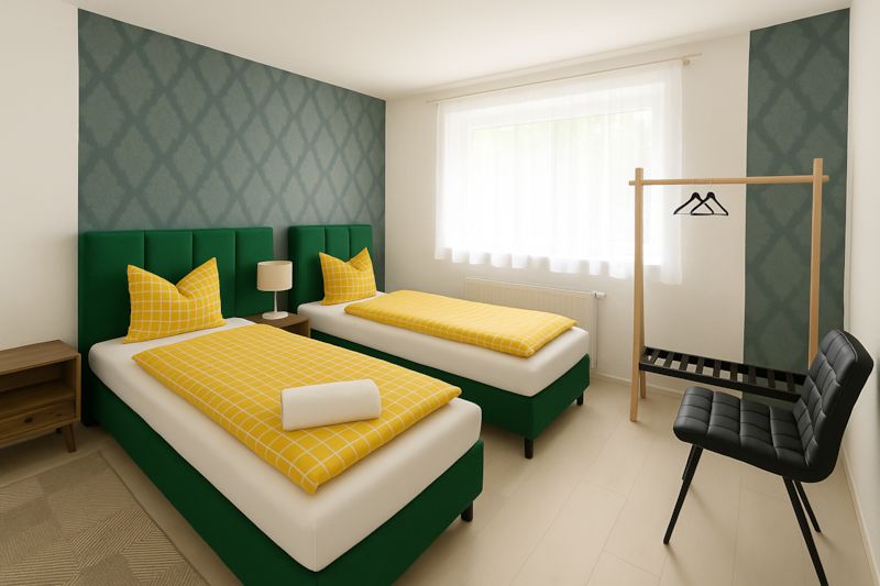 Our cozy two-room apartment offers comfortable accommodation for up to four people. The accommodation is fully equipped and ideal for construction workers, business travelers, and families. Features: Sleeping arrangements: Two rooms with a total of four beds. Kitchen: Fully equipped kitchen. Bathroom: Modern bathroom with shower. Technology & amenities: Smart TV and free WiFi. Additional amenities: Washing machine. Shopping facilities are in the immediate vicinity.