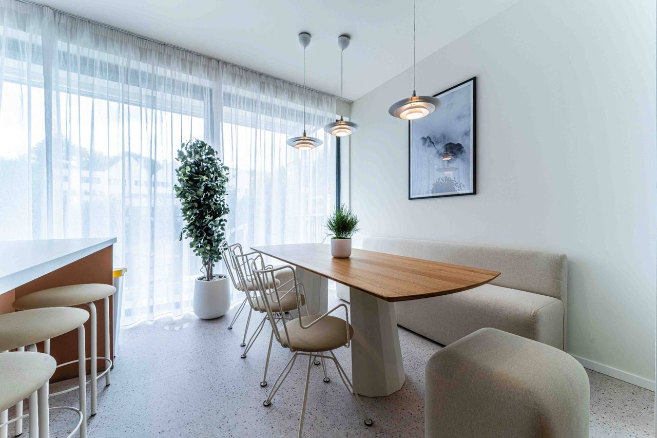 This modern studio offers everything you need for a comfortable stay, thoughtfully furnished: it features a double bed, a built-in wardrobe, a dining area, a living area with a sofa and coffee table, and a private bathroom. The fully equipped kitchenette allows you to cook at your own pace. The layout is optimized to provide a pleasant and functional environment within a co-living space.