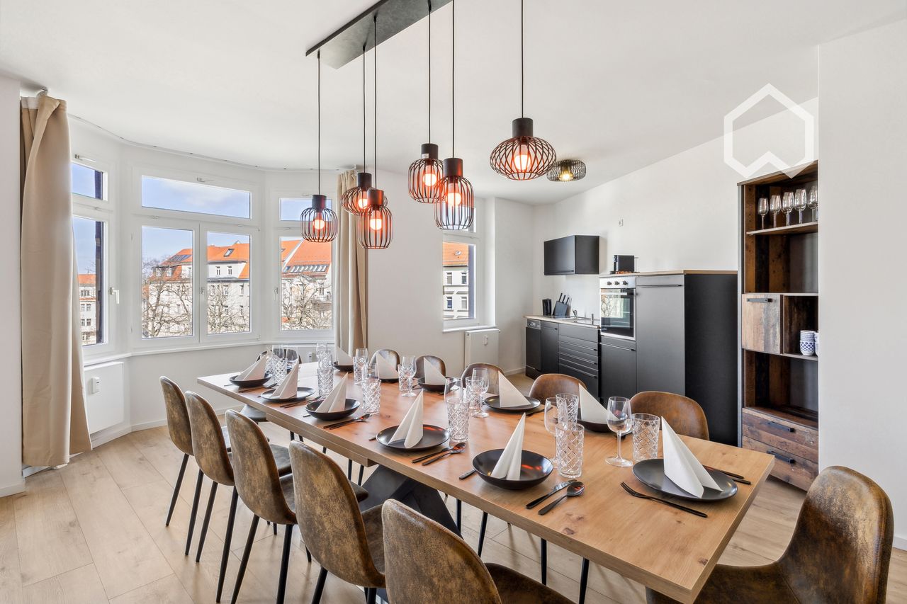 This bright and stylish loft at Stannebeinplatz in Leipzig offers the perfect home for mid- to long-term stays. Whether you’re a project team, a relocating family, or a digital nomad, the Freunde Loft Leipzig combines functionality, comfort, and community in one inspiring space. 🛏 Key Features: • Sleeps up to 10 guests – comfortable beds, bunk beds, and a cozy sofa area • Large dining table for up to 12 people – ideal for meetings or shared meals • Fully equipped kitchen with dishwasher, ov...