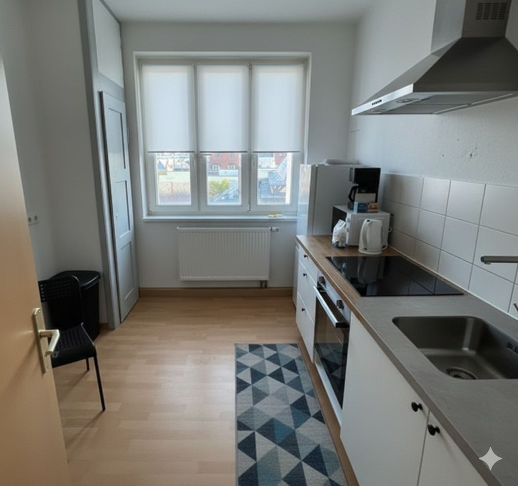Flat for max. 3 persons Good transport connections. Close to the railway station We only let flats and houses with the following standard: -single beds -fully equipped kitchen + bathroom -fast WLAN / WIFI -washing machine -professional cleaning and disinfection -professional management of all units Furnished flats for long-term rental from 3 months!
