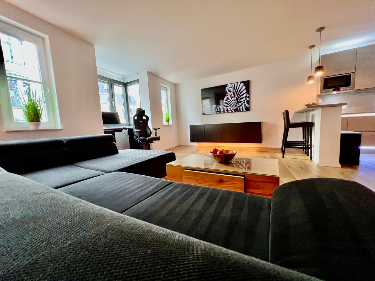 Located on the 2nd floor, this 2-room apartment with exclusive real wood parquet flooring, underfloor heating and smooth plastered walls is in a prime location in Bremen's cultural district near the theater on Goetheplatz in Ostertorsteinweg. The apartment is fully furnished and equipped with a fast Vodafone-Cable internet connection with up to 250 Mbit/s download and 50 Mbit/s upload. The central location of the apartment offers best connections to public transport as well as countless infras...