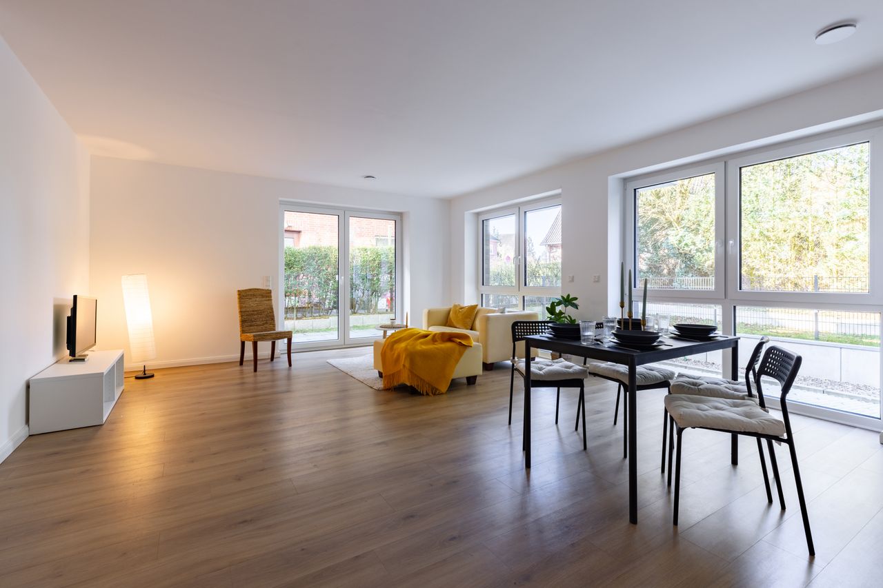 Shared living Space in Norderstedt with luxury design. Total of 4 Tenants. Each have their own room. Very solid walls make for a very quiet and calm atmosphere. The House is newly built and has the newest equipment in terms of C02 efficient Technologies. There is a garden and a shared kitchen as well as a shared living room. There is a total of 2 Bathrooms, which each include a shower and a bathtub. The Apartment is 161 m² of which each tenant has access to 40 m². Located in a very quiet neighbo...