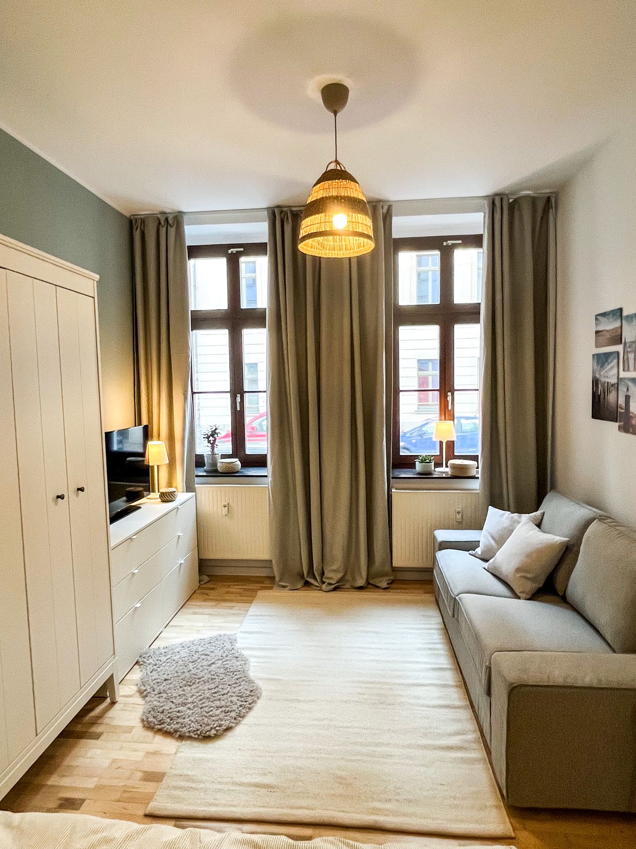Cozy 1-Room Apartment in a Central Location in Leipzig This modern 35 m² apartment on Gottschedstraße, Leipzig, has everything you need for a comfortable stay. The living and sleeping area is stylishly furnished and includes a Smart TV for relaxing evenings. The fully equipped kitchen allows you to cook conveniently at home. A washing machine is also available. Thanks to its central location, shopping, restaurants, and public transport are easily accessible. Ideal for business travelers or long...