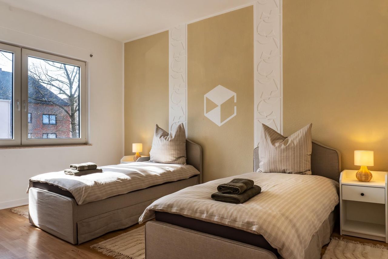 -Große Gruppen: Im selben Gebäude befindet sich eine weitere Wohnung mit weiteren 5 Schlafplätzen. -Schlafen: 4 Einzelbetten + 1 Schlafsofa. -Ausstattung: Vollküche, Balkon, Smart-TV & schnelles WLAN. -Service: Wöchentliche Reinigung auf Wunsch möglich. -Lage: Top Anbindung an B6/A27. Hafen & Überseestadt in Min. erreichbar. Einkaufsmöglichkeiten & Imbiss direkt vor der Tür.