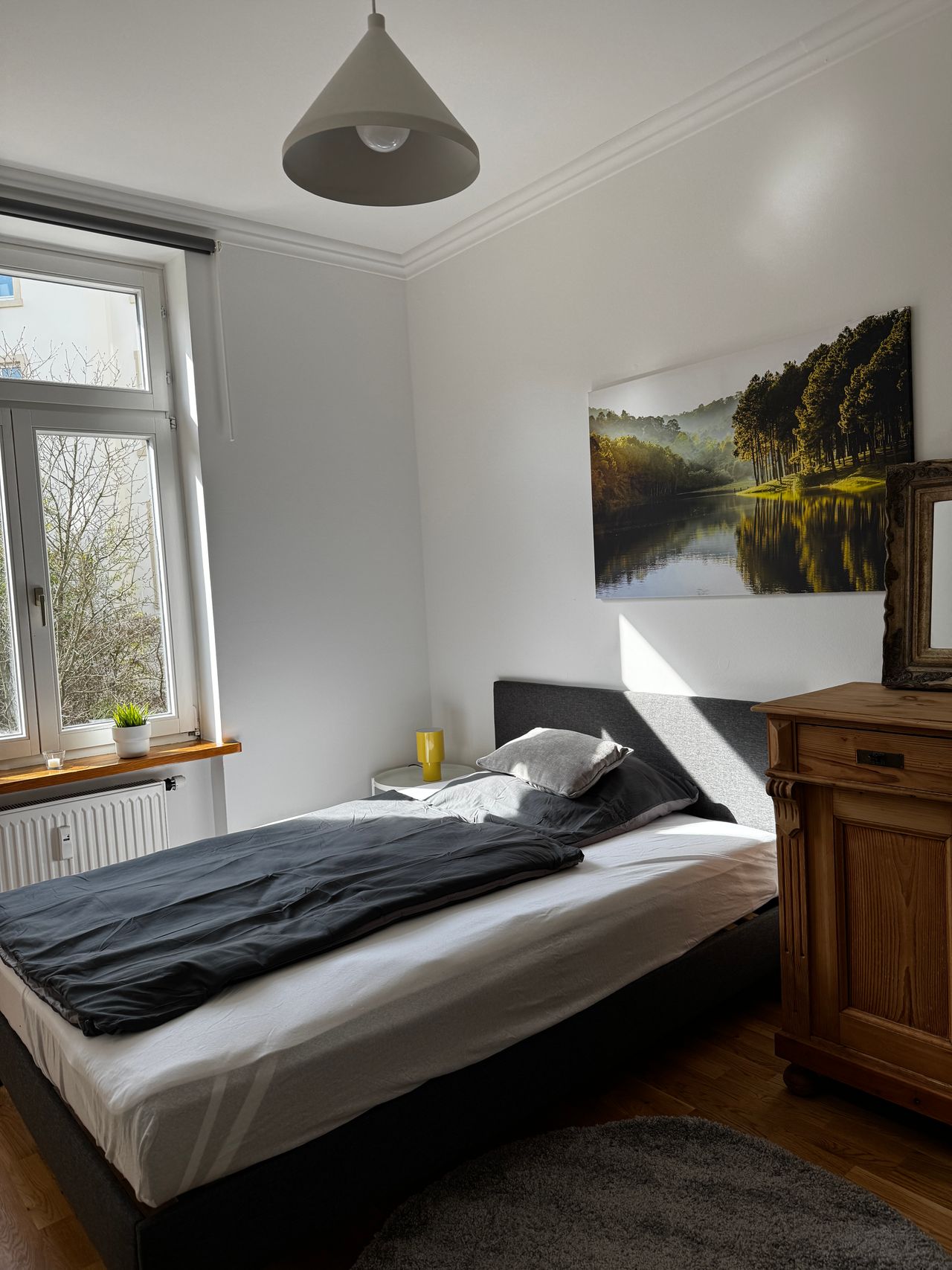 Newly renovated and very centrally located 3-room apartment in Frankfurt Gallus with 2 separate bedrooms or 1 bedroom and a room for free use (e.g., home office), separate living and dining area, and new and fully equipped fitted kitchen. New bathroom with light-colored tiles, shower, and new washing machine. Comes with a dedicated parking-spot. Fully furnished and equipped, including kitchen appliances such as a microwave, electric kettle, coffee machine, cleaning supplies, and decorations. ...