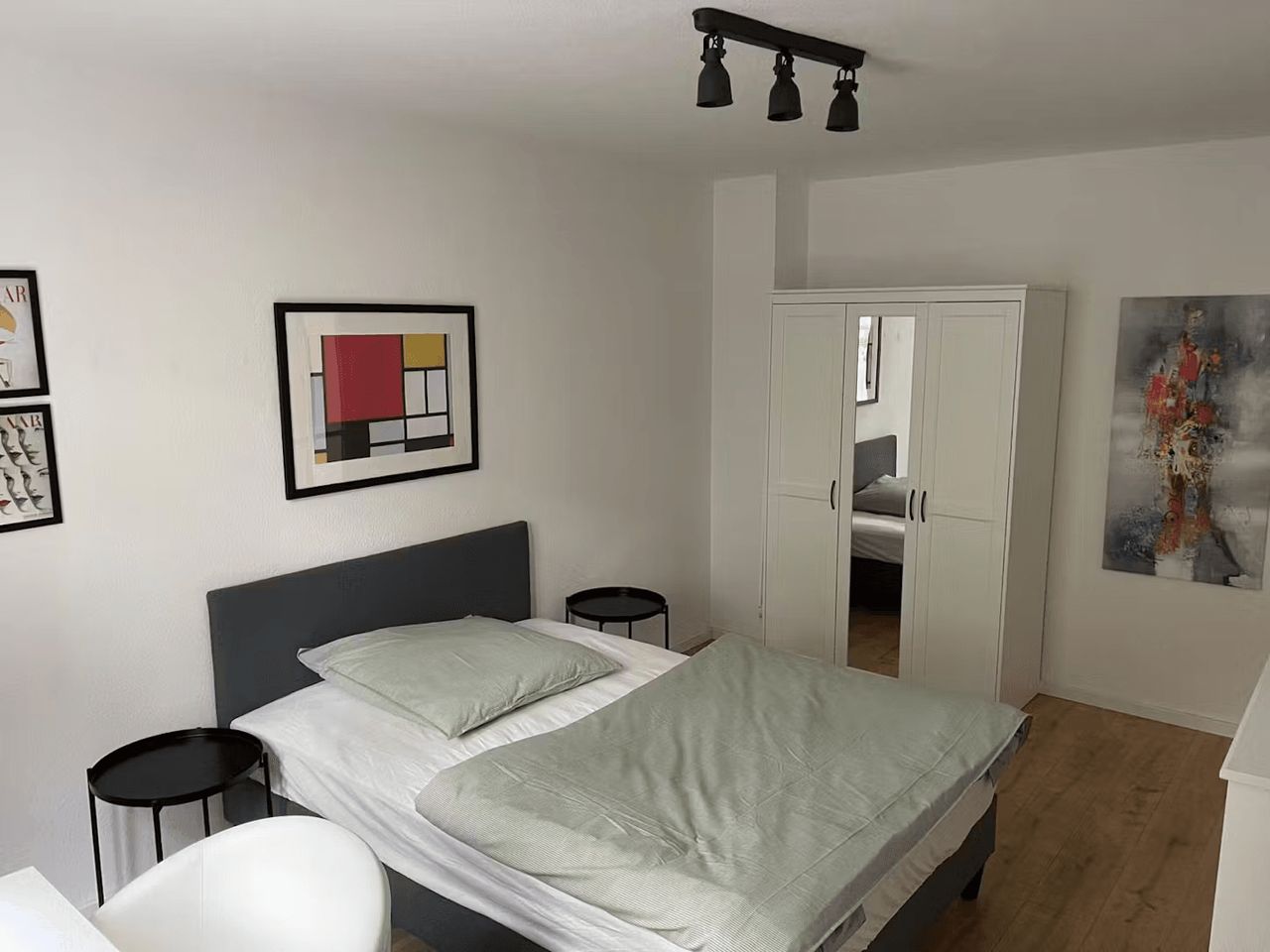 Please keep in mind that the 480€ cleaning fee + 480€ non-deposit fee have to be paid BEFORE moving in. This is an unlimited contract with 1 month notice. This is one of the 3 bedrooms in the apartment. The room is equipped with a box-spring bed with fine bedding, two bedside tables, a chest of drawers, a large closet, and a working desk with a corresponding working desk chair. In addition, there is a large elegant kitchen with all the necessary cooking equipment and utensils. There is also a r...