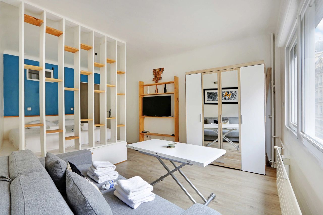 It is a 36m2 studio located on the 3rd floor with lift. The accommodation consists of : - A living room with a sofa, TV - A space with a double bed 140x200 - A separate fully equipped kitchen (fridge, oven, induction cooker, coffee machine, etc.) - A shower room with WC - Several storage spaces - TV and broadband Internet (WiFi) - Very bright - Bed linen and towels provided