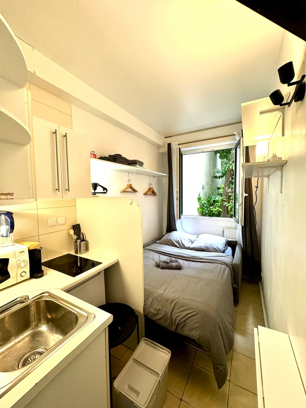 The Space Location: Ground floor, quiet neighborhood near Porte Dauphine Building: Secure with a digital code and concierge service Sleeping arrangements: Comfortable sofa bed Bathroom: Private shower inside the studio, shared toilets in the hallway (cleaned every two days, shared with only three other people) Kitchen: Fully equipped with everything needed for cooking Nearby attractions: Bois de Boulogne, Avenue Foch, Arc de Triomphe (25 min walk), Eiffel Tower (18 min by metro) Neighborho...