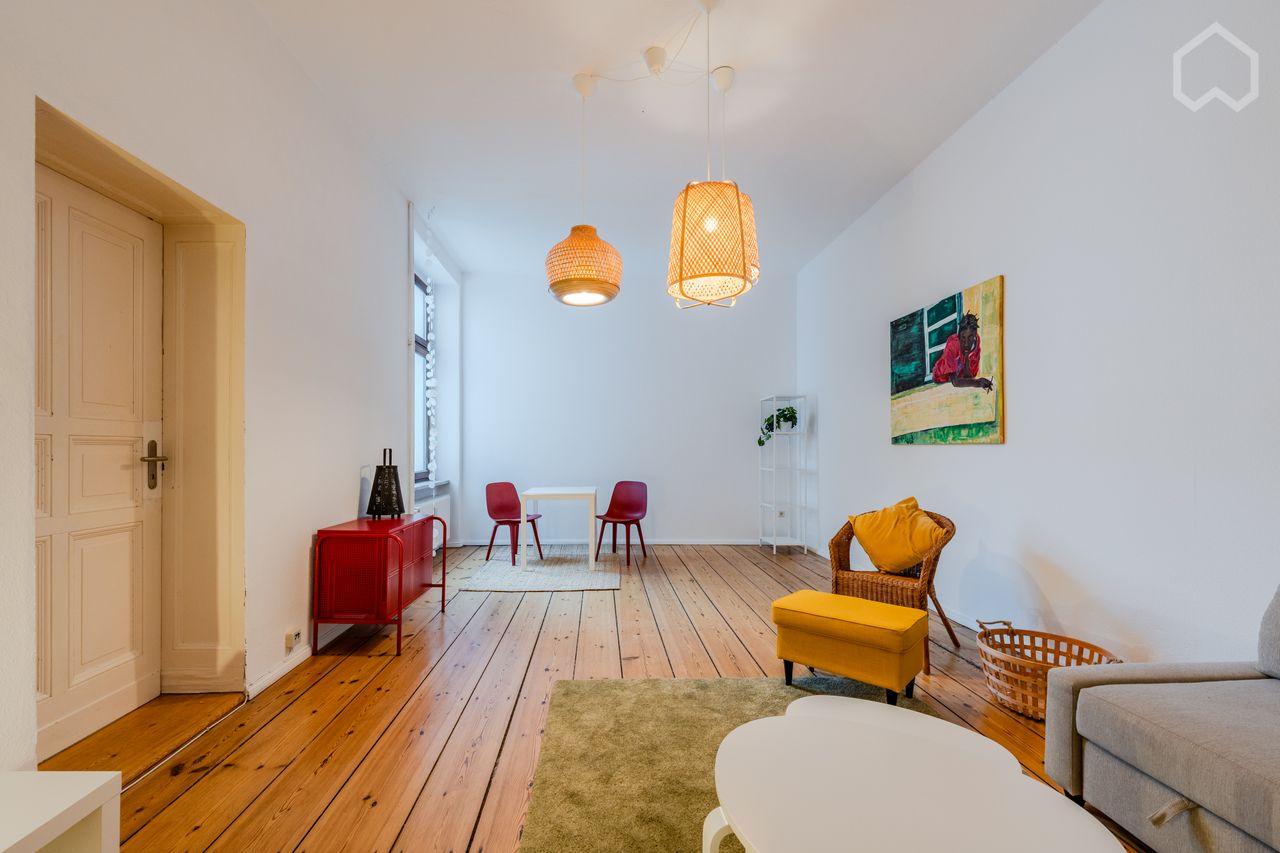 Property description: We offer a stylishly furnished 2-room apartment for rent in a quiet rear building of a charming old building in Kreuzberg. The apartment is bright, modern and ideal for singles or couples. Location: The apartment is located in the rear building of an old building in the trendy Gräfekiez, is quiet despite its central location and only a 5-minute walk from the subways (U8 and U7). Surrounded by hip cafés, international restaurants and boutiques as well as stores for everyday...