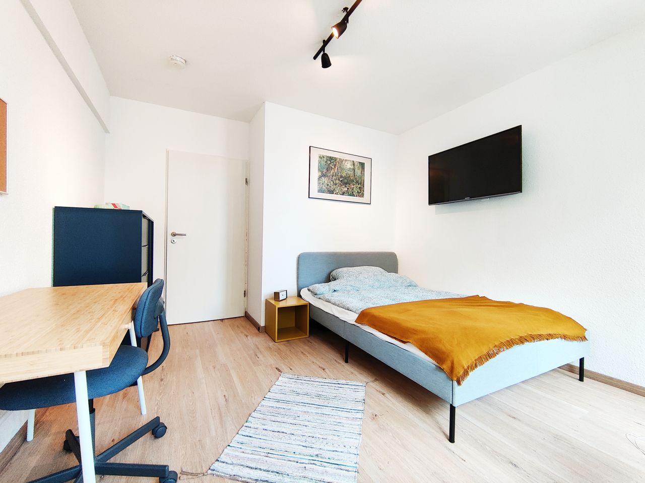 The apartment was renovated and refurnished 6 months ago. The apartment is fully equipped, from the cup to the bed linen, everything is available. In the immediate vicinity are all stores for daily needs. The washing machines and dryers are located in the basement. In the rent, of course, all costs are included. The apartment has a small balcony.