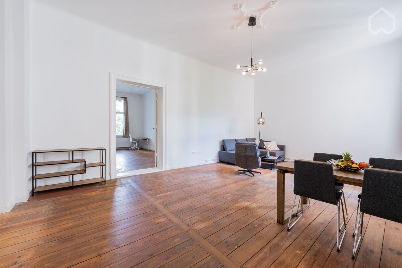 Beautiful large and bright two-flat in great location in Kreuzkölln with a large balcony. The apartment has a spacious bedroom, a living/dining room with sofa bed,bathroom with bathtub and a kitchen incl. kitchen table. Great location in the middle of Kreuzkölln, right in the lively Gräfekiez.Bars, restaurants, cafes, stores and amenities are right on your doorstep. The Südstern subway station is a 2-minute walk away and provides access to the U7, as does the N7 bus . At Hermannplatz, which is ...