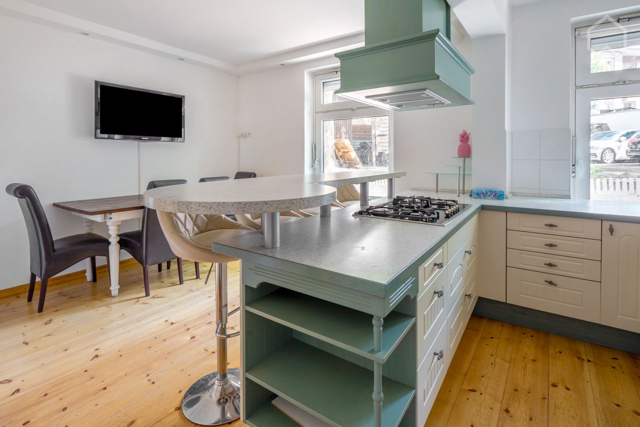 Equipment The 3-room apartment is very clearly and stylishly furnished. The design-oriented upholstered bed (180/200 cm) with spring mattress, extravagant headboard and practical bed box offers a comfortable sleep; also for two persons. There is also a spacious wardrobe in the sunny room. The kitchen is equipped with all the comforts to prepare a delicious meal. The dishwasher saves you from washing up, so you have more time for your leisure activities. There is a washing machine in the bathro...