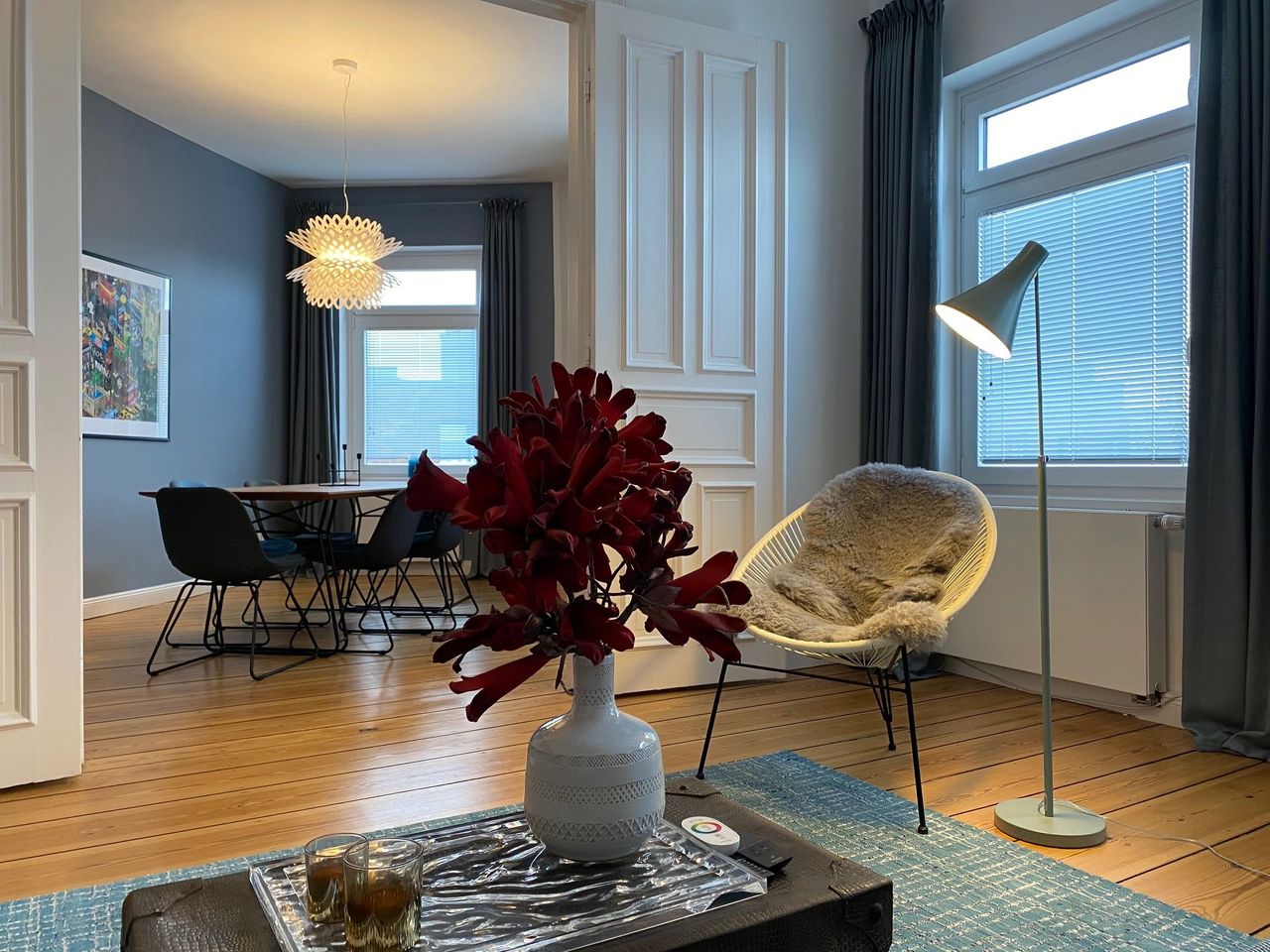 Newly renovated beautiful apartment in a historical building. 3 meter high ceiling, wooden floor, classic layout, bright rooms, south-west facing windows with fantastic views to Elbphilharmonie, the harbour and "Tanzende Türme" - there is no compromise! Filled with high quality, stylish yet comfortable furnitures, the place is so charming with a personal touch of interior design.