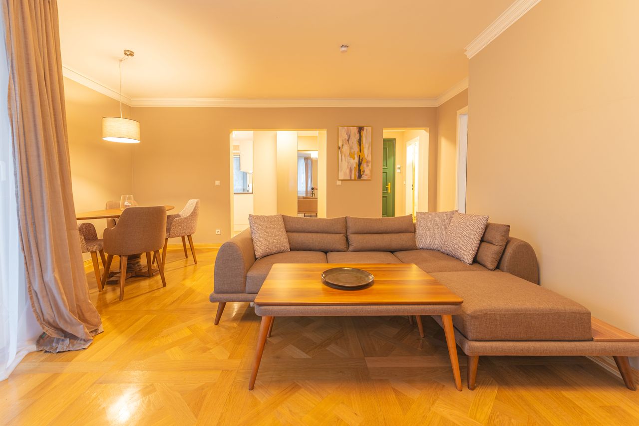 The representative chic apartment in a perfect location is equipped with all the comforts you need for a pleasant stay. The barrier-free apartment offers two balconies (quietly located to the rear), a fully equipped kitchen with dishwasher, ceramic hob and oven, one bedrooms with a double bed 160cm x 200cm and one bathroom with a shower. Due to the central location, the transport connection by car and public transport is optimal. U-Bahn and busses are just a few minutes’ walk away.