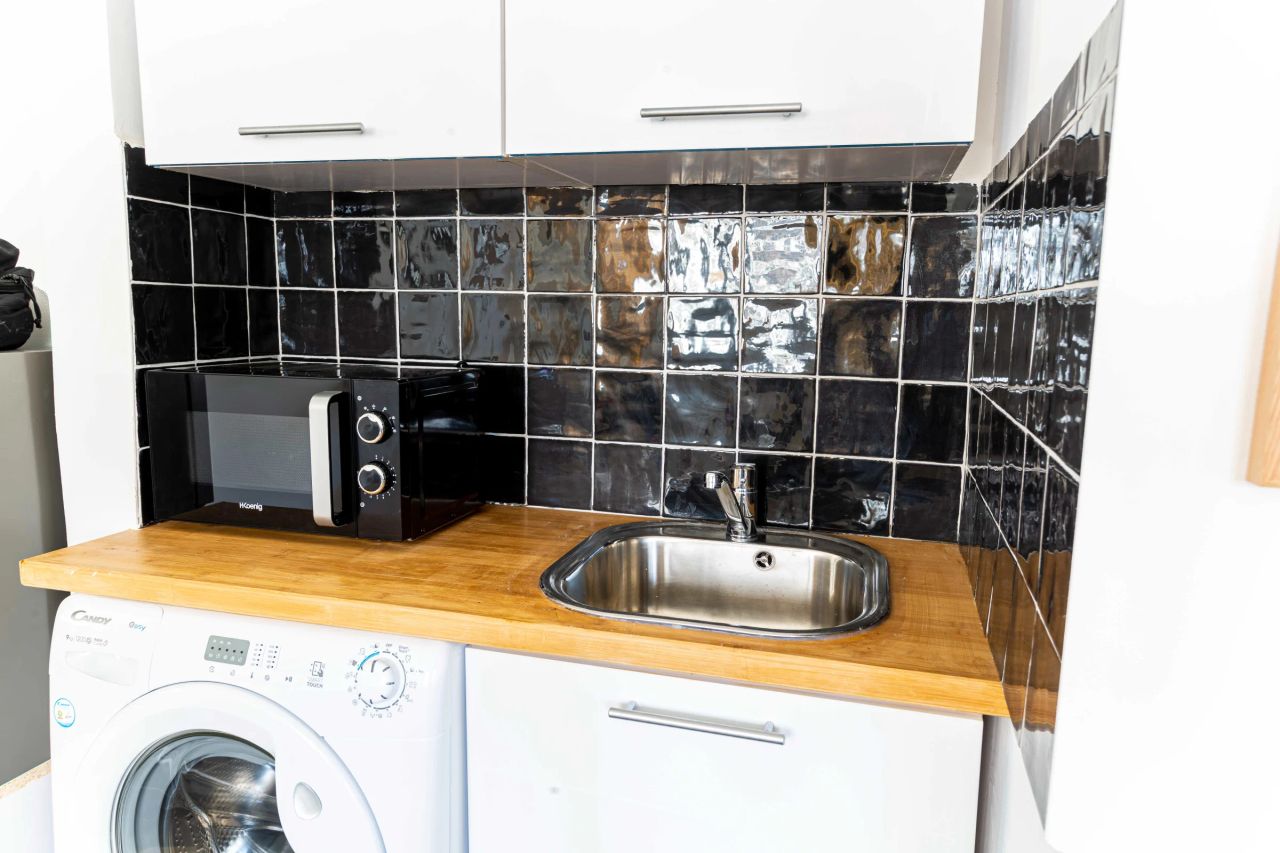 This is a 39m² apartment located on the ground floor. It comprises: A fully equipped and functional kitchen: refrigerator, stove, coffee machine, toaster, kettle, microwave, washing machine, oven... A living room with a convertible sofa and a TV. A bedroom with a double bed. An attached bathroom with a shower. Separate toilet. Storage space. High-speed TV and Internet. Linens and towels provided.