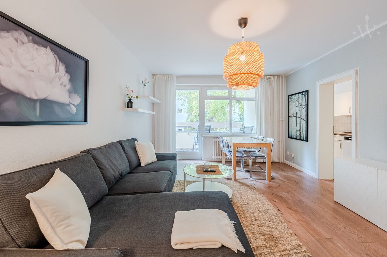 NOTE: For terms of <6 months, accommodation tax of 7.5% is due! The apartment is located on the 1st floor of a building constructed in 1978. An elevator is available. The apartment has a living room with a beautiful balcony, which invites you to relax, a high-quality kitchen, a modern bathroom, a practical storage room and a cozy bedroom. The following highlights await you: - Bedroom with double bed - closet - fully equipped kitchen (electrical appliances, cutlery, crockery etc. incl...