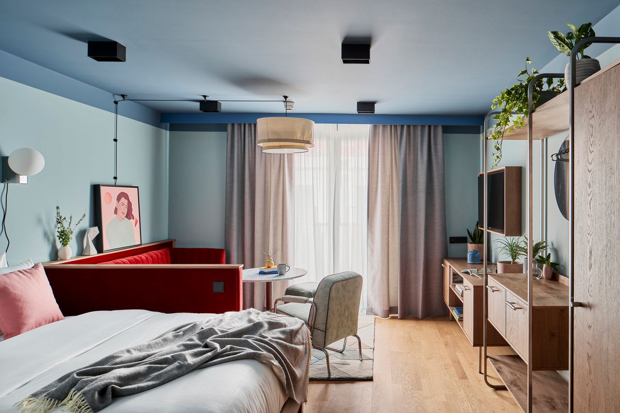 Discover the quiet, creative atmosphere with great art, unique furniture and mid-century industrial design in the style of the Munich Werkbund movement. You can expect an open co-working space with public areas and a traditional food counter. Plus spacious and refined apartments. Make yourself at home. There's room to relax, with a UK king-size bed and our unique Locke sofa. And for living with fully equipped kitchen with dining table, microwave, dishwasher as well as many designer cooking appli...